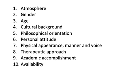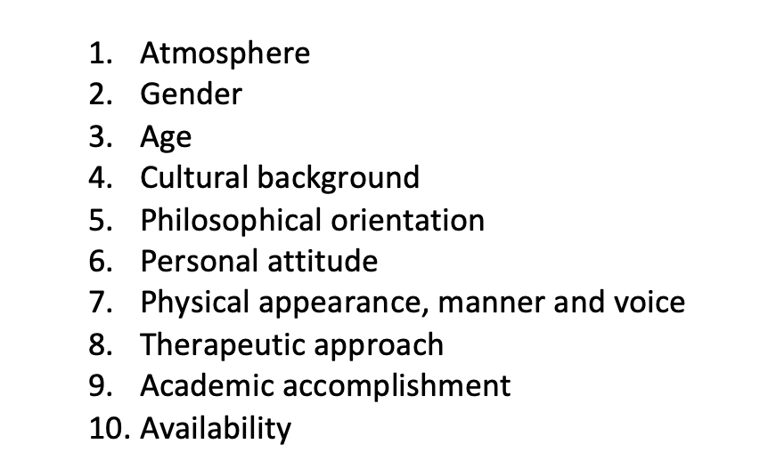 Ten Factors have been identified that may impact on the therapist-client relationship. This list is by no means exhaustive, and is included here only to encourage you to reflect on your own experience.